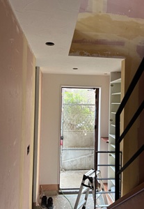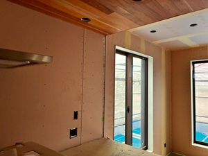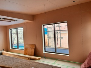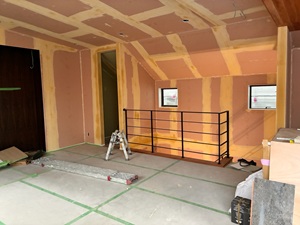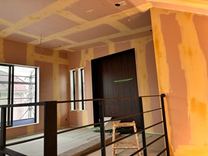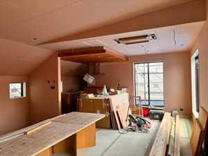 屋内は内装下地工程が済んで仕上げ工事に進んでいます。