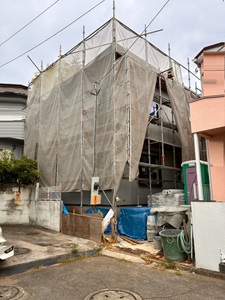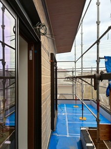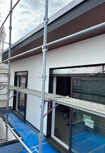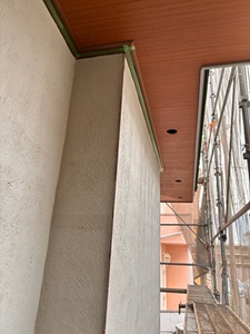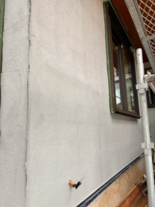 現在の外壁下地工事はモルタル塗りが間もなく終了段階です。