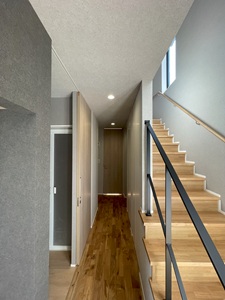 屋内は造作工事もほぼ終了して各部位は仕上げ工事に移行しています。屋外の外壁工事も細かな部位工事を残して外装は仕上がっています。