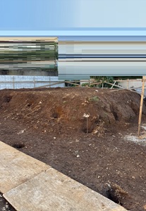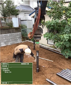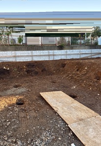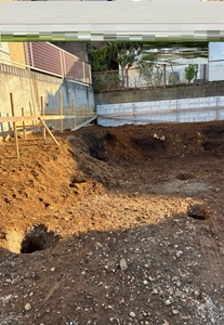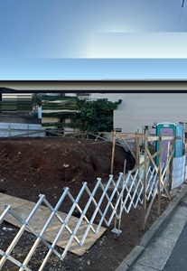 只今の現場は敷地に重機が入り、着工前整地の状況です。