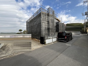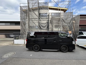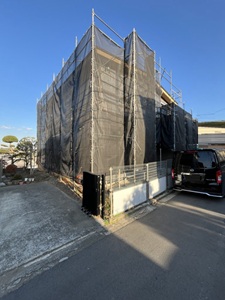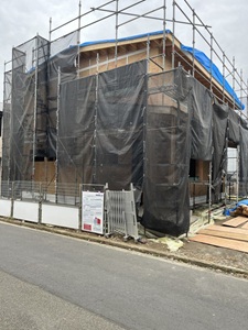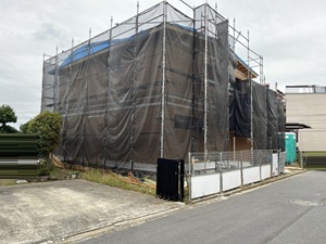 K氏様邸現場の屋外は外壁下地工事中になっています。