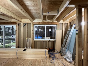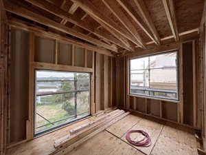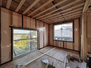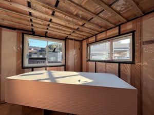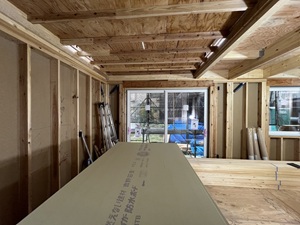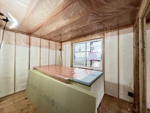 屋内は断熱工事が終了して、気密シート工事工程の最中です。
