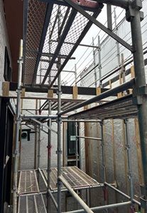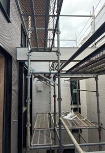 現場進捗状況は先行足場を設置して、