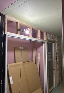 屋内は、下地工事が一段落して造作工事工程が続いています。