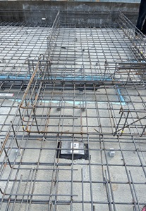 現場は配筋工事工程を作業中です。