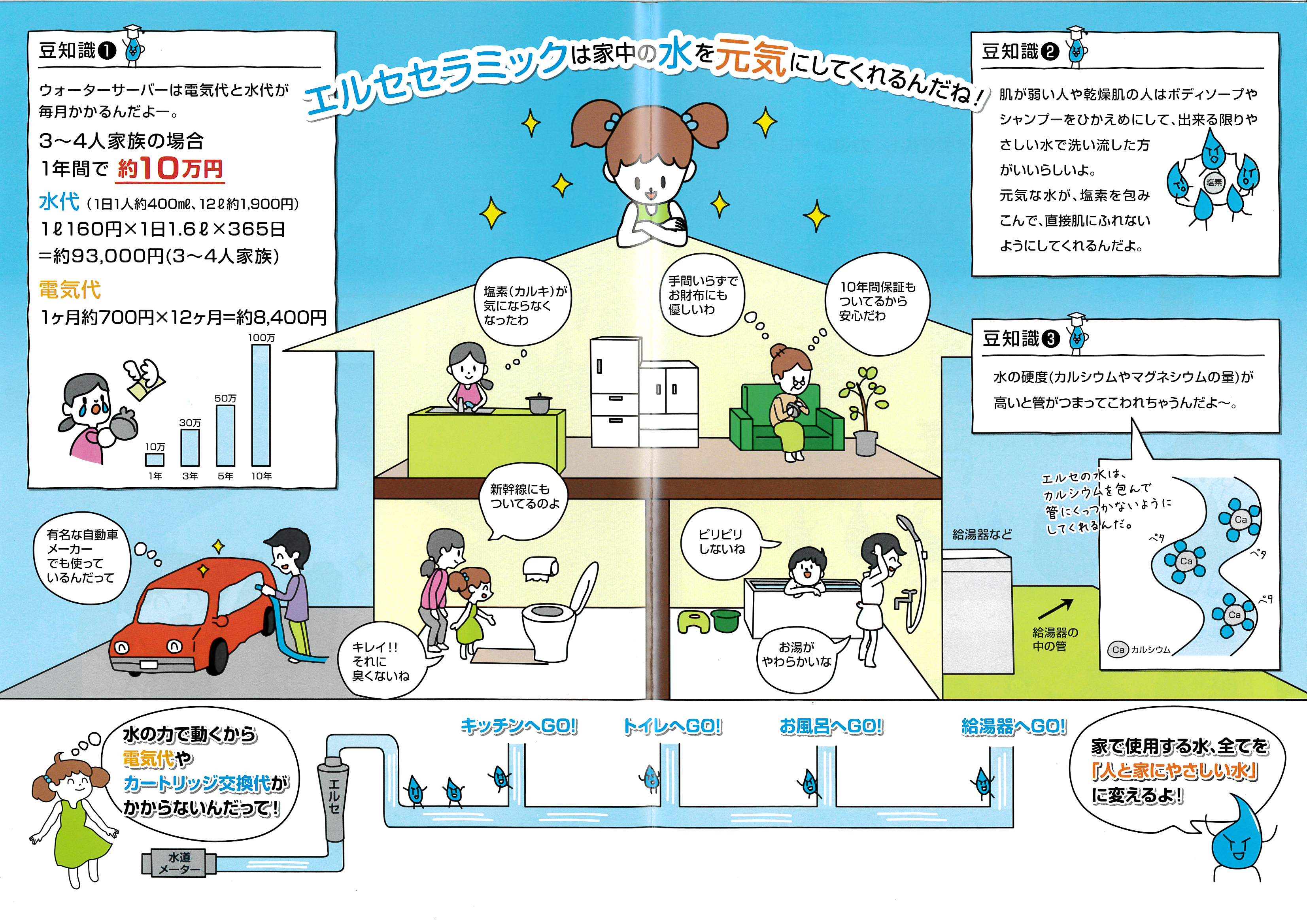 弊社でお奨めしております。お水の画期的なシステムがあります。このシステムは、実際に私の自宅と会社に設置をして体感しております。さて、この装置は、水に含まれる塩素を摩擦によりプラスにし塩素を包んでくれるものです。水の物性(性格)を変化させて 洗浄力、脱臭力、溶解力、浸透力、抗酸化力を活性化し 環境問題対策に貢献しているものです。 内部は、セラミックの粒で構成されているため、一度設置すれば半永久です!私は今 生活の中で使っておりますが、水が美味しくなったのは勿論のことシャンプーの泡立ちが先ず違います。泡がきめ細やかになったような気もします。また、お風呂のお湯には最適です。お湯が柔らかくなりました。エコ給湯の不純物を除去してくれることも効果の一つです。一般の水は、塩素が入っているため、排水管等に化形物が付着し易くなるそうです。 因みにこの装置は、新幹線の水道水に使われたり、病院等にも使われているそうです。 価格も驚くような額ではありません。家を体とするならば、血管がきれいになったことと同じです!!新築、リフォームに取り入れたら如何でしょうか。