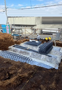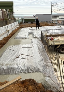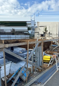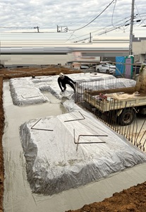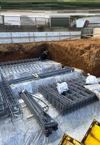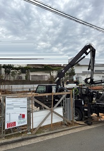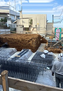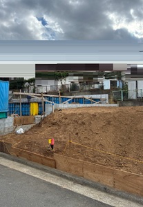 只今の現場は敷地に重機が入り、着工前整地の状況です。