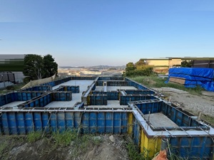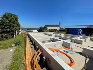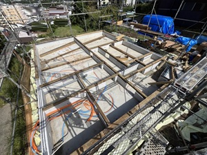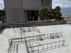 基礎底盤コンクリート打設の作業工程進捗状況です。